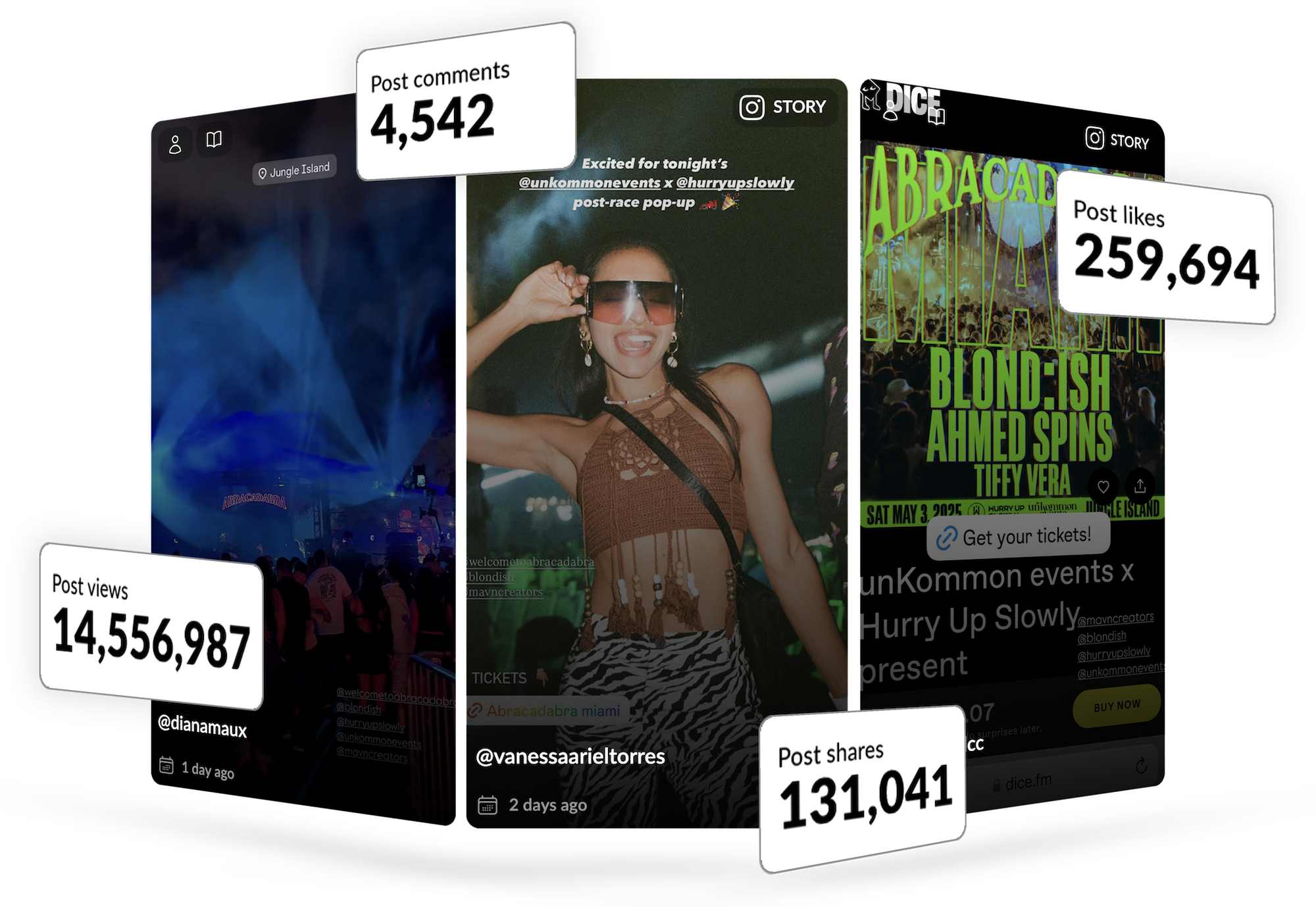 All campaign posts + stories are pulled directly into your dashboard, with live performance metrics in real-time.